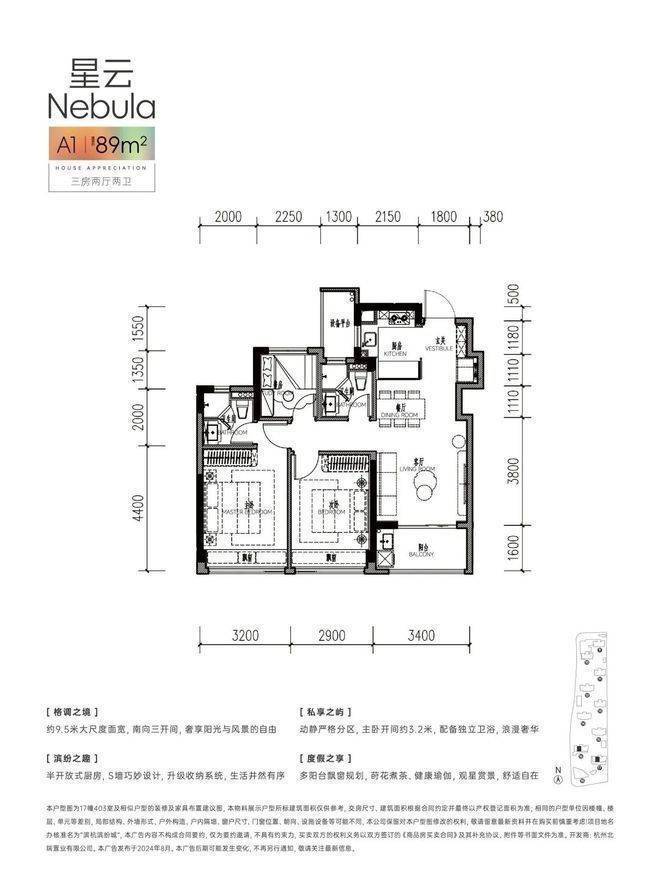 独立玄关收纳南边套房主卧带走入式衣帽间+独立卫浴+飘窗南向约6.4米面宽,带阳台,U型厨房带大开窗,餐客厅一体带约5.8米超长飘窗……该户型更具有生命力。