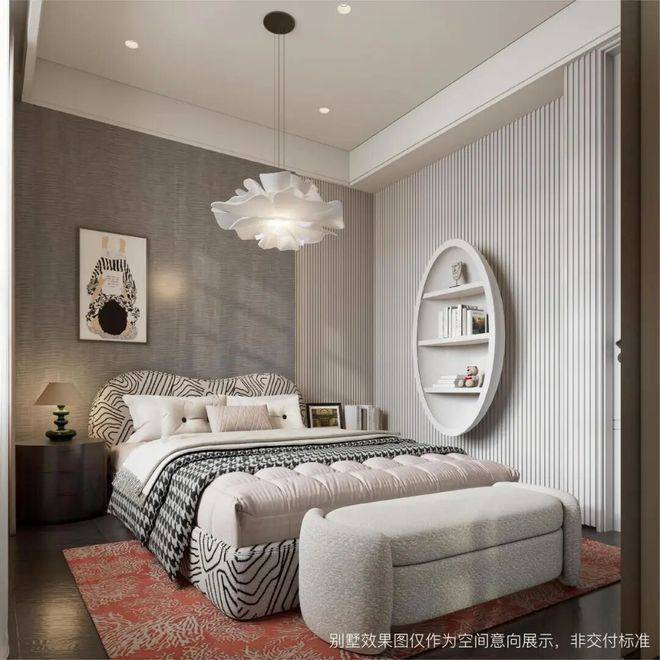 开阔的卧室空间,独立主卫设计,双台盆让晨间洗漱不再拥挤,浴缸正对着窗,泡澡时能看美景在玻璃上流淌,细节里全是"被照顾"的温柔。