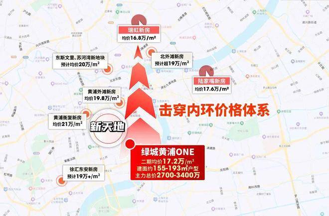 虹口在售新房单价已达16.8万/㎡,绿城地王预期更是19万+/㎡;