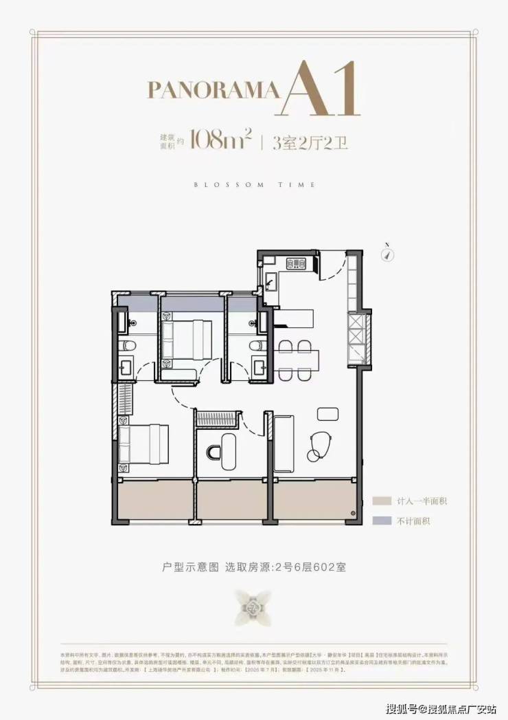 约108㎡逆天三朝南阳台!实得率拉满+无敌采光视野!(户型图过程稿,以开发商最终发布为准)