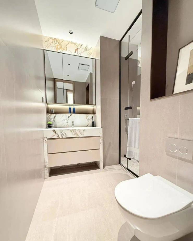 卫浴缦云上海所有户型的所有卫生间里都用了悬浮式的洁具和柜体,确保了下方空间的打扫无死角,对未来的入住带来非常大的便利性!