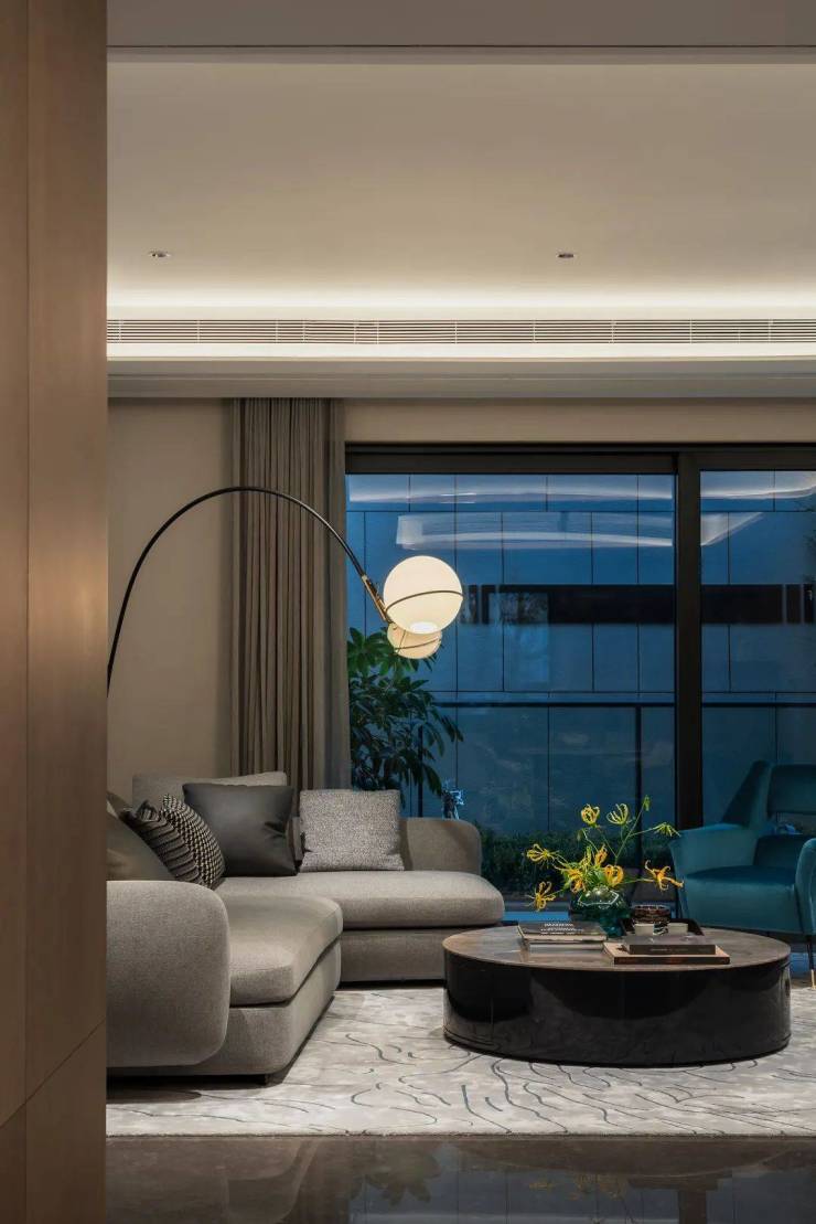 室内设计,秉承摩登东方的理念,设计以人、生活为中心,从空间本体和情感层面都回归生活,270度环幕采光,开放式会客厅设计,兼具尺度感与功能性。