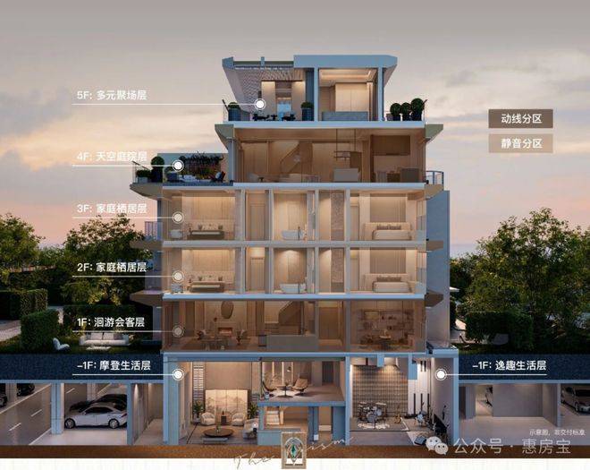 第二个首创,是“三重立体庭院”。在这样的结构下,更用三重立体庭院赋予了墅居的“平权”。大院子不再是下叠的独享,上叠同样拥有空中悬浮庭院,在加上南北双露台庭院,让每一层都能拥抱天空。