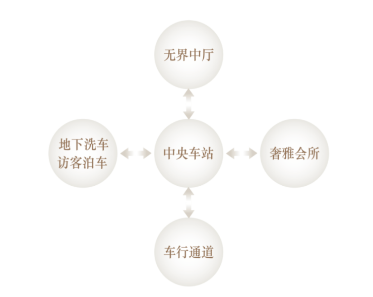 “中央车站”的出现,打破了原有车行通道的理念,让空间更像一个可以短暂停留的开放式空间。