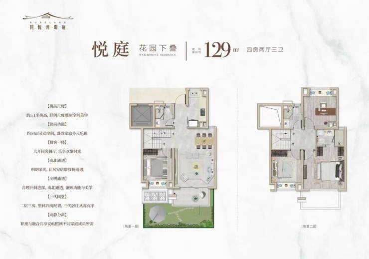 ·地面一层,餐客厅一体连接约4.05米的南向阳台,将居所与前庭花园风景巧妙相连,还充分考虑家里长辈的居住需求,打造了带飘窗南向卧室,推窗即园林,也不用爬楼梯。