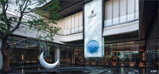 极致考究的「琉璃光院」,从时间中淬炼而出,标志性汉白玉玄月族徽,与高10米的蓝水晶奢石光幕,显赫“日月同辉”之境。近50年乌桕树王矗立,搭配「宇宙之心」漩涡水景,动静相宜,恍如纳藏宇宙生息的力量。