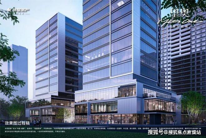 外立面采用三面铝板+大面积玻璃,顶部设计“悬浮云端”格栅塔冠。