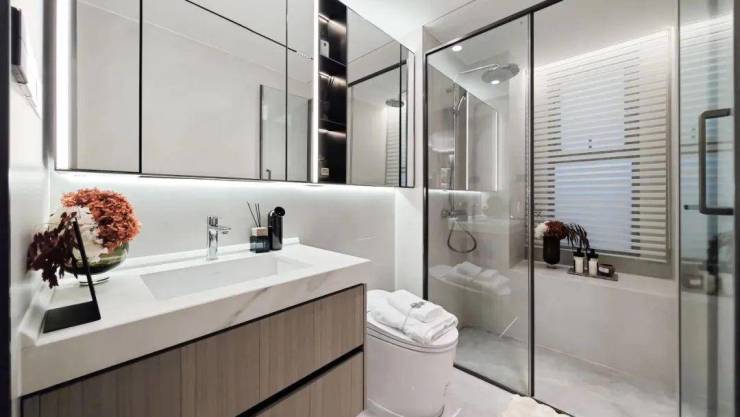 一般而言,主卫和次卫能拥有窗户达到全明采光已经称得上优秀了,而这套户型的两个卫生间均都有飘窗,丰富更多收纳可能性。