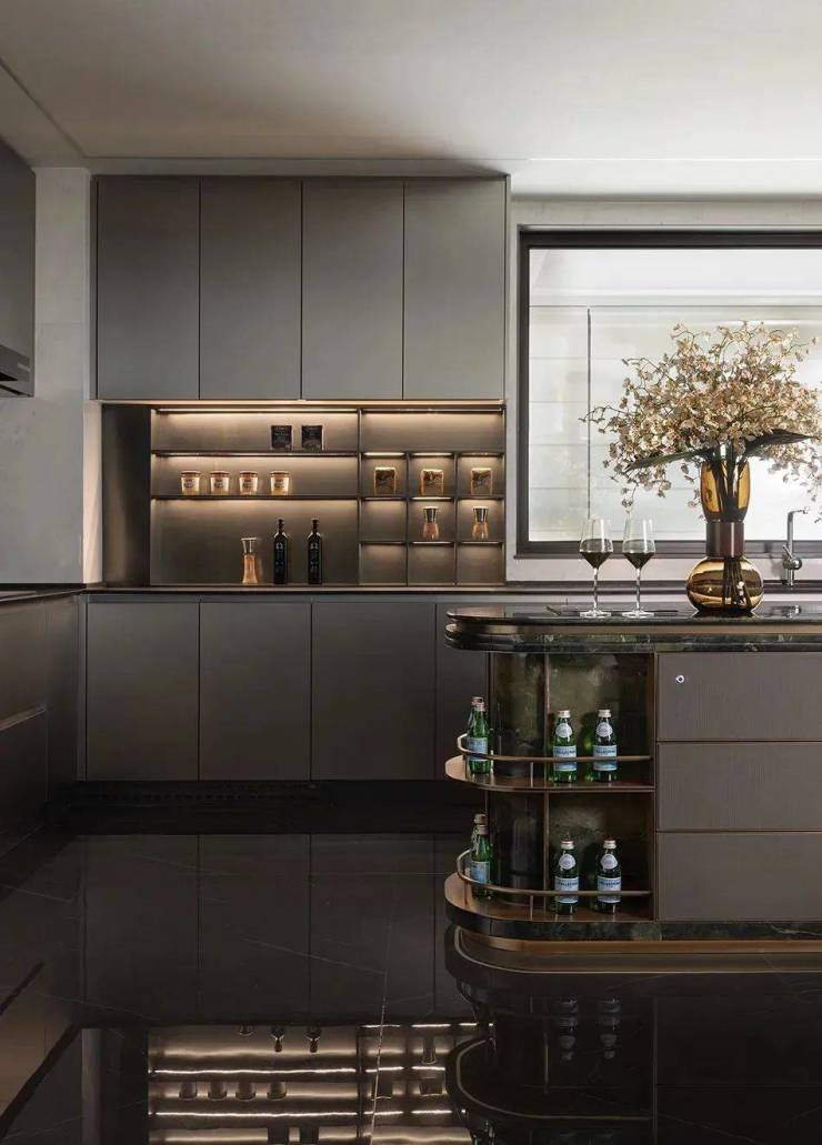 其次,厨房呈科学的U形设计,动线更为合理,无论下厨或是端饭,操作都非常便捷。