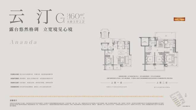 建面约160m上叠,4房2厅3卫,共计约38套,上叠的户型布局其本与下叠一致,附赠南北露台,边套户型的客厅以及主卧同样也是270°飘窗!