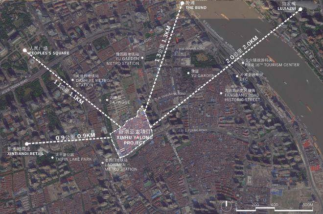 距新天地直线距离约900m,陆家嘴直线距离约2km,外滩直线距离约1.3km。