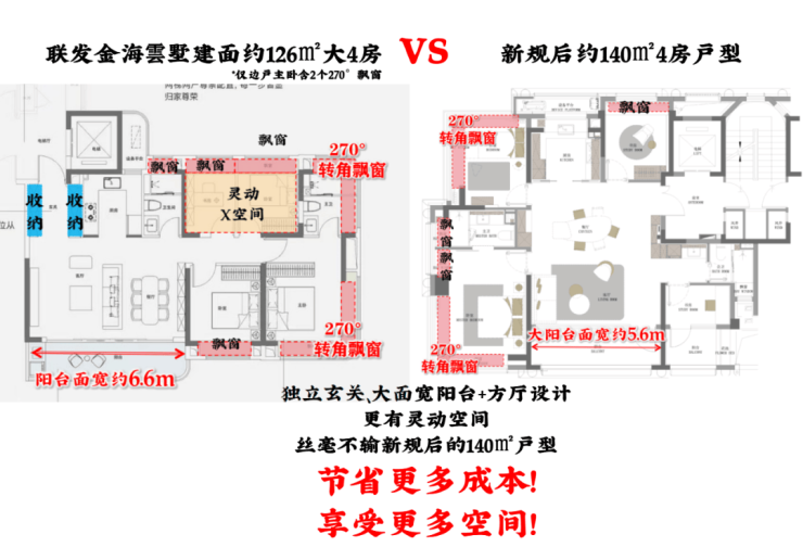 左金海雲墅126㎡户型;右其他新盘140户型,仅供参考