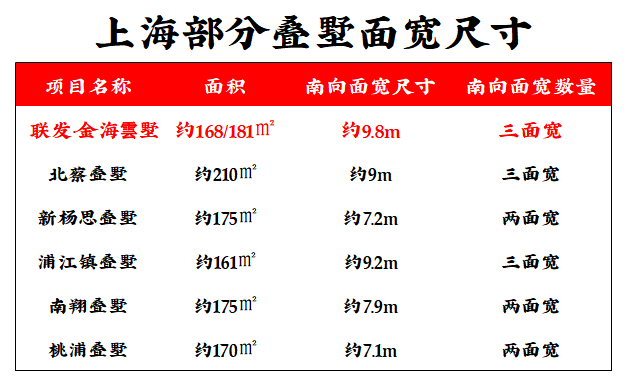 我整理了近期部分经典叠墅产品的面宽数据。