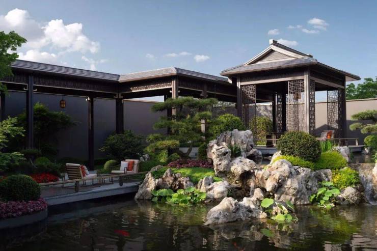 1、1⃣大师筑境悬山顶、歇山顶等东方屋檐,举折、鸱吻、悬鱼等屋脊装饰,并结合铝板+极简线条等现代元素,营造独具韵味的当代山水建筑