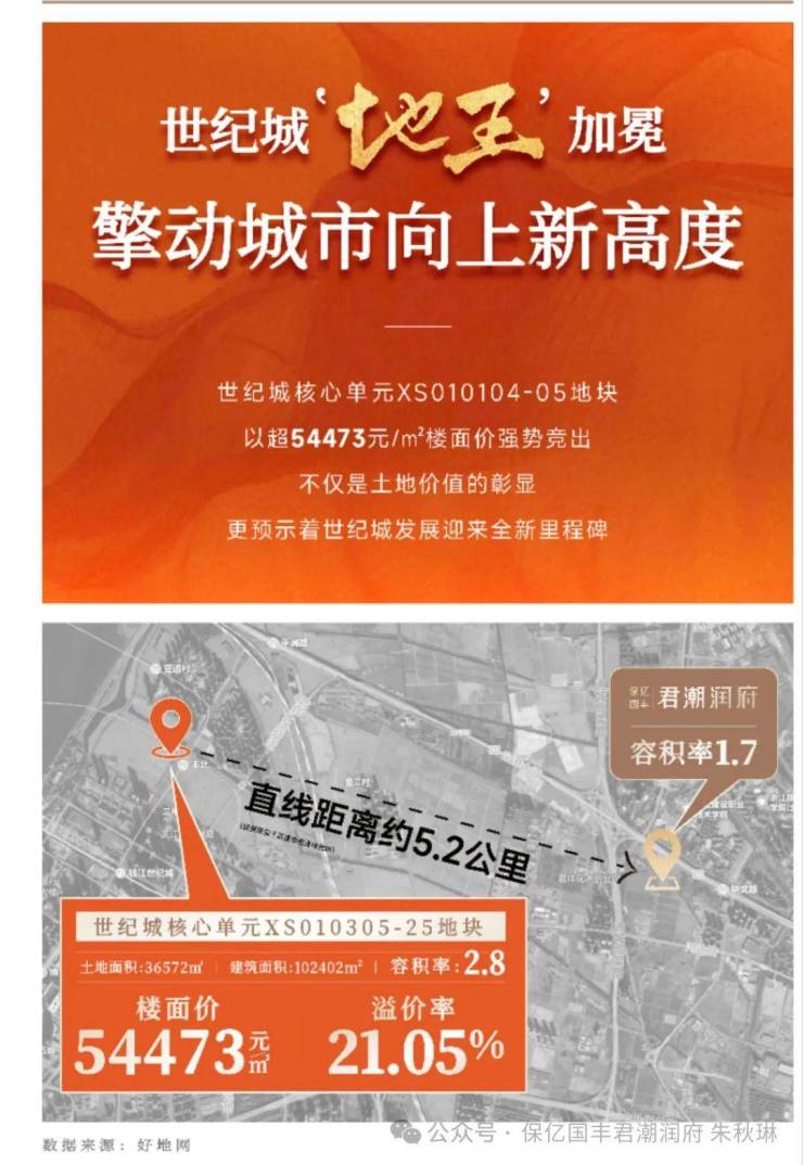 2025年世纪城土拍屡创新高,涉宅用地平均溢价率超35%,项目相连板块楼面价基本3.5万/㎡,6月诞生新地王,楼面价54473元/㎡,与君潮润府直线距离仅5公里左右