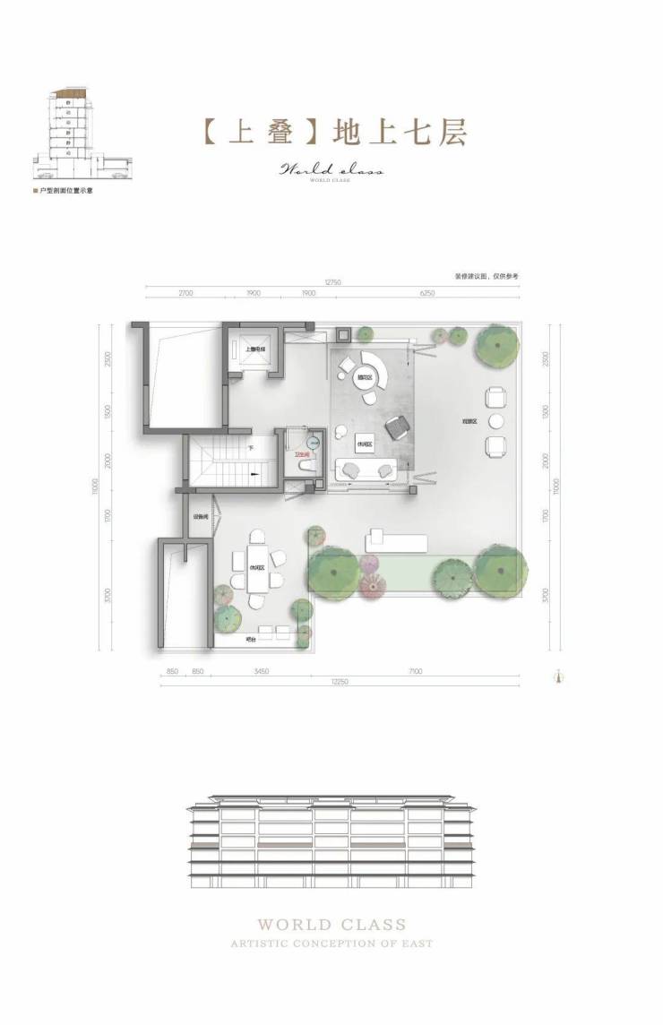 物业类型:低密墅境社区(9幢14-17F高层+12幢6F叠墅),容积率1.7,绿地率30%