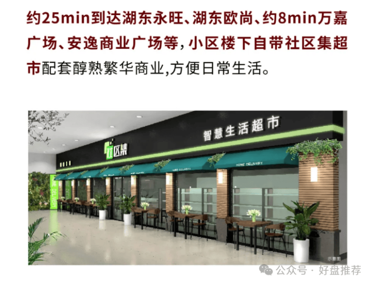 商业:万嘉广场、3万㎡规划商业综合体(待建),社区内设玫瑰园智慧超市