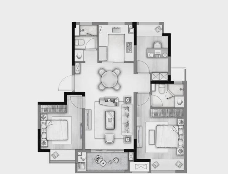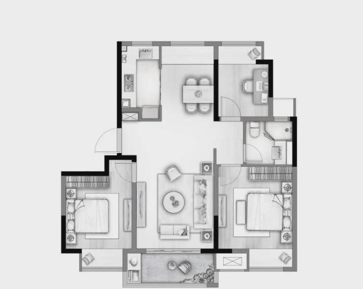 首层以三开间朝南为轴,南向阔景阳台揽尽四季风光;全卧室标配灵动飘窗,延展休憩尺度。餐客厨一体化格局,串联社交主场与静谧休憩区,动静皆从容。
