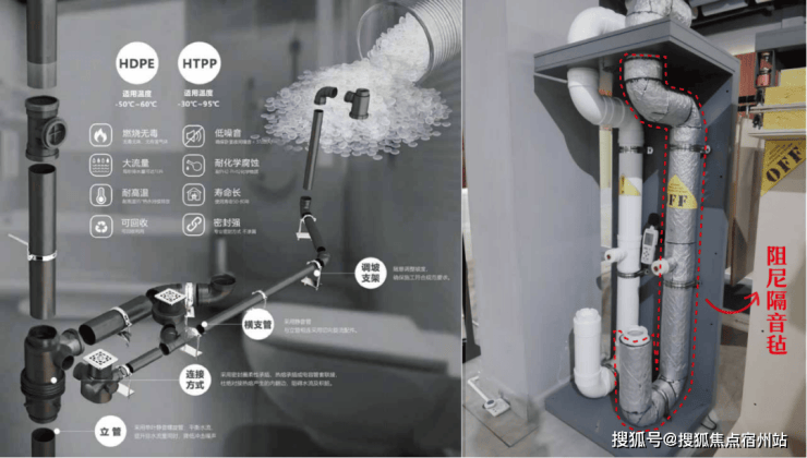 静音管道与设备守护安眠:采用螺旋排水管,环保阻尼隔声毡与管道结为一体,从源头降低水流噪音。