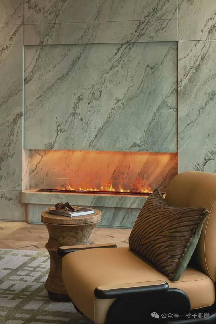 主要材料:大理石、奢石、黄铜、不锈钢金属、影木、烤漆、特殊墙纸。