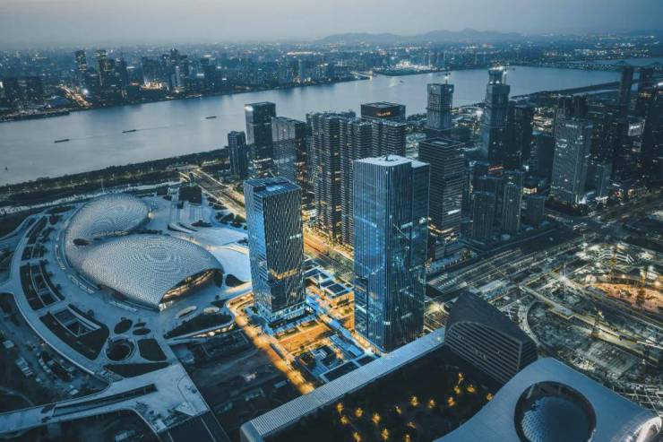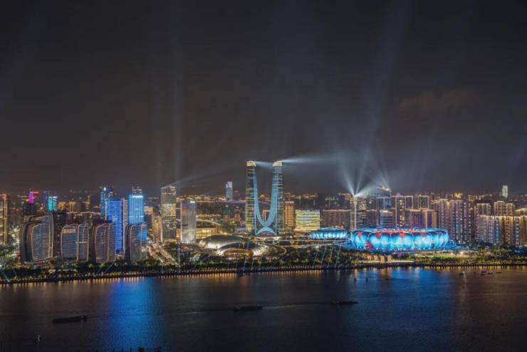 一面正对“日月同辉”和市民中心,没有偏角,更没有遮挡。杭州「新世纪中轴龙脉」正在这一视线上,自武林中心—市民中心—奥体中心,这一格局奠定了杭州整体城市的气运走向。