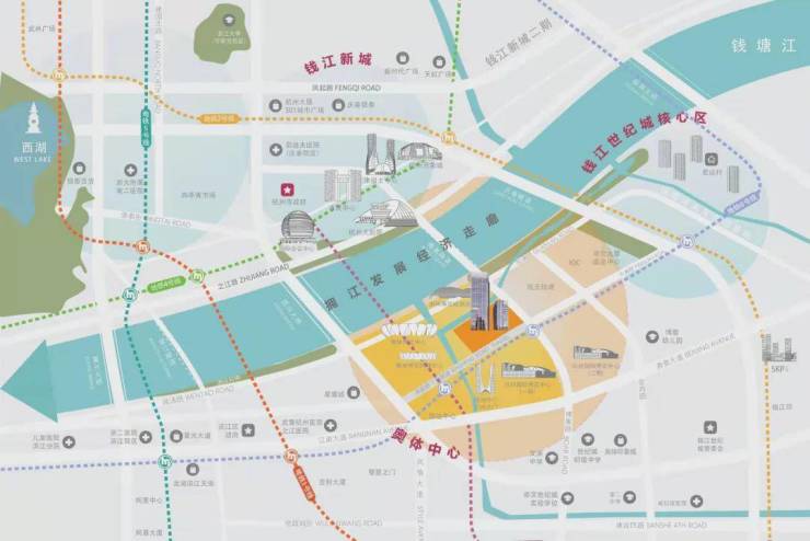 周边公园:西为奥体中央公园(规划中),钱江世纪公园