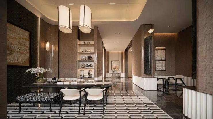 但凡看过棠悦芳华轩的朋友,会注意到项目的入户单元门、电梯公区等都藏着很多奢雅的细节,诸如各类岩板、石材、铝板等高浓度运用,瞬间提升了空间的档次。