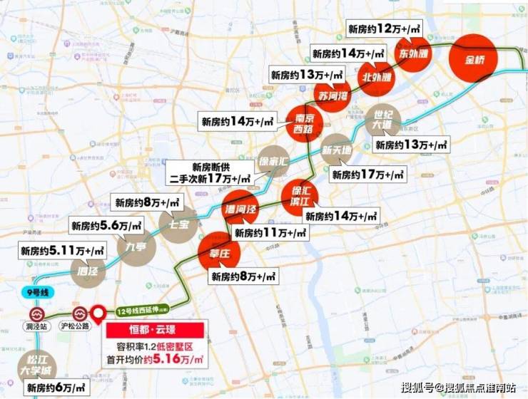 从全市格局来看,12号线可谓是上海的黄金线路,漕河泾、徐汇滨江、南京路、苏河湾、北外滩、东外滩均是上海寸土寸金的CBD,价格早已超过10万大关。而与项目相隔4站的莘庄(七莘路站)目前已经超过8万/㎡,相比之下容积率1.2均价5万出头的恒都·云璟完全能成为12号线沿线高精尖人群的改善置业目的地!