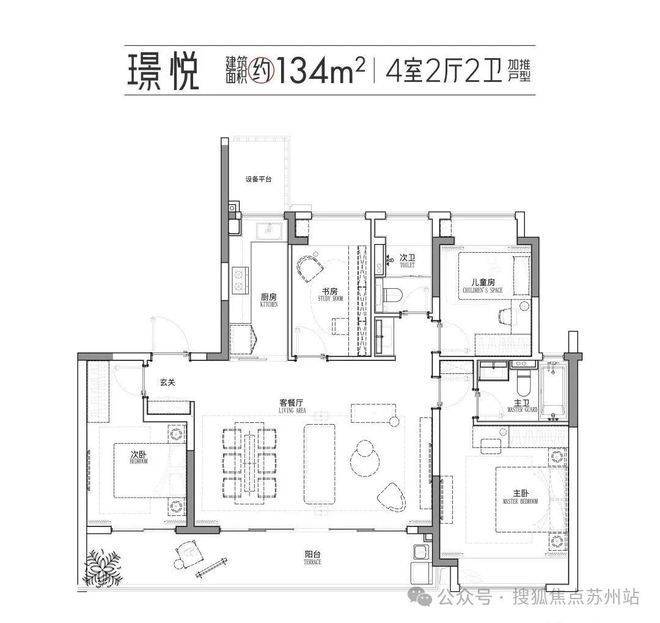 作为区域内开创性的高级改善作品,用起步便是建面约134m²的产品,对同类产品形成跨维压制,将自己的起点,置放在别人的天花板;