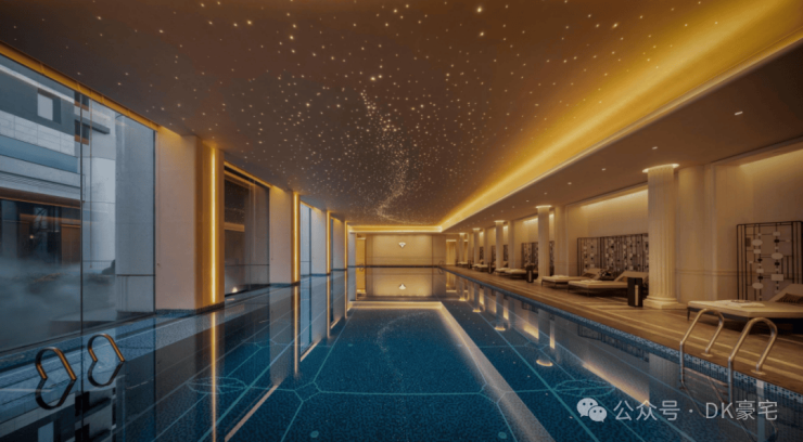 海上·清和玺首创“垂直会所系统”,将约2000㎡地下会所与约1000㎡架空层联动,形成总体量约3000㎡的超配公区。会所内不仅配备品牌健身房、私宴厅,更打造了“奢华彩蛋”——璀璨星空顶泳池采用手工定制ARTDECO马赛克拼花,搭配纯天然石材罗马柱,宛如艺术殿堂;同时引入高尔夫尊或同档次品牌的高尔夫场所,让业主在家门口享受高端运动体验。