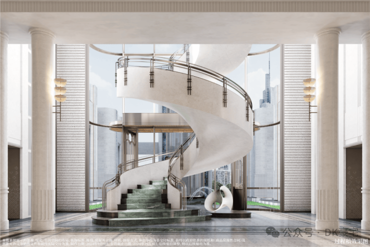 再仔细看细节,顶部香槟金色格栅塔冠以及壁柱采用香槟金和白色色调,将海派与现代之美生动演绎。