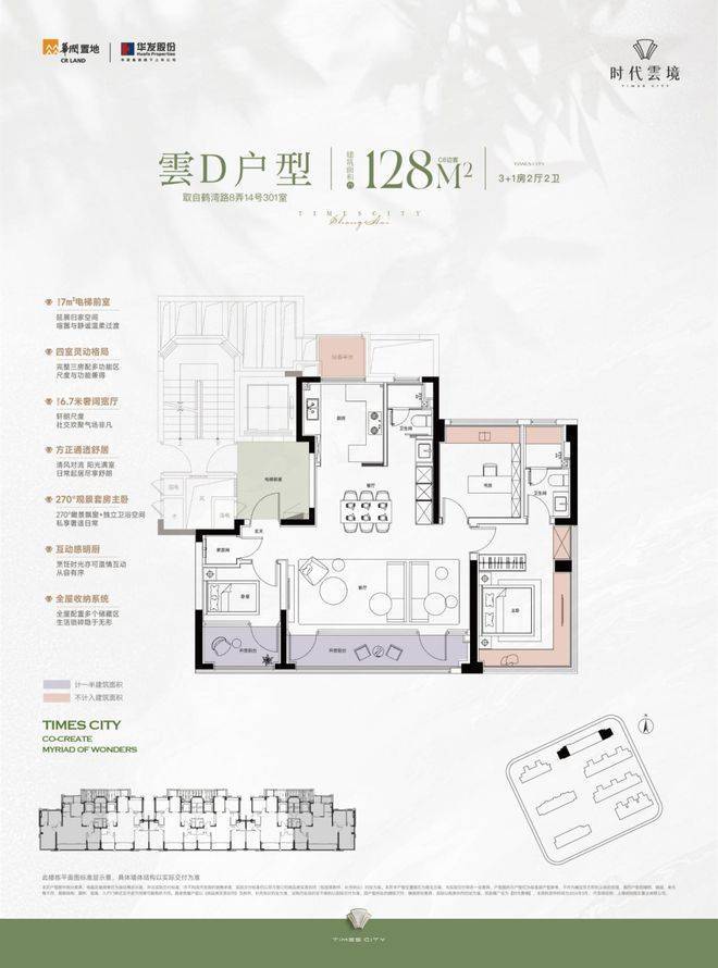 户型方面更是精准“拿捏”客户所需,建面约95-128㎡墅境小高层,全系三开间朝南、大采光面、多飘窗设计,餐客一体通透大气,全维收纳体系解决储物难题,创新四分离卫生间大幅提升使用效率。同时还有建面约 148㎡边套叠墅,低密感与舒适度拉满,满足不同家庭的品质生活需求。