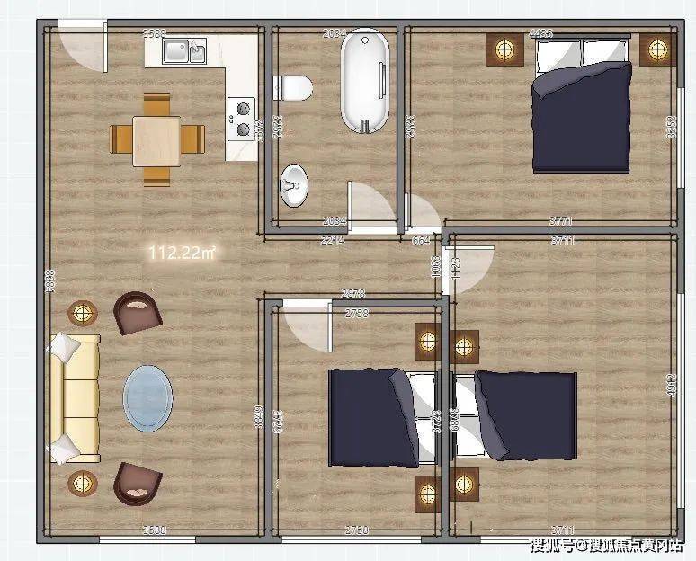 建面约112.22㎡3房2厅1卫户型图