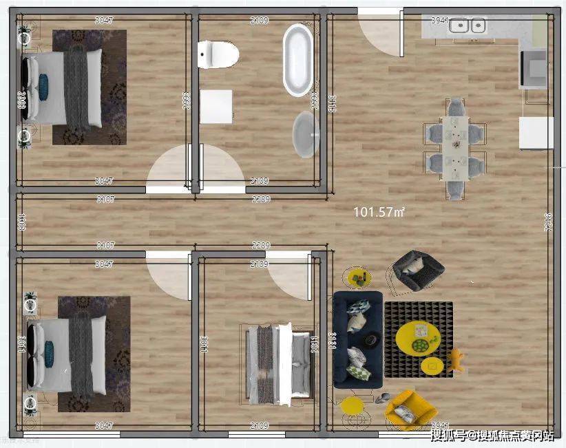 建面约101.57㎡3房2厅1卫户型图