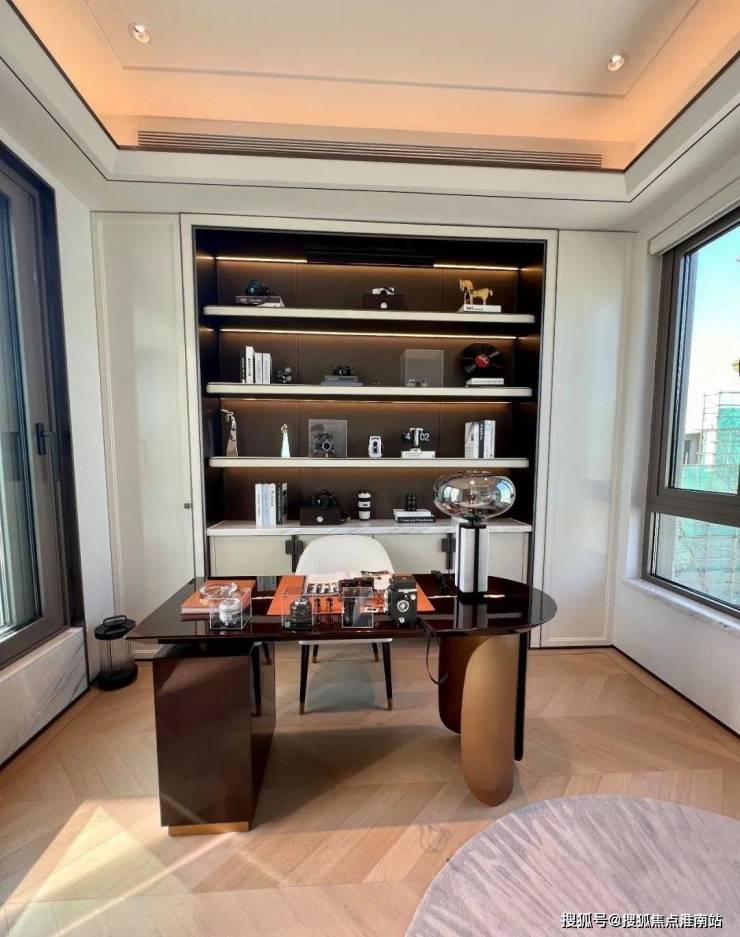 三层是一整层的主人私享区,由书房、衣帽间、主卧组成,更有建面约13.5平米露台,保证了主人的私密空间。