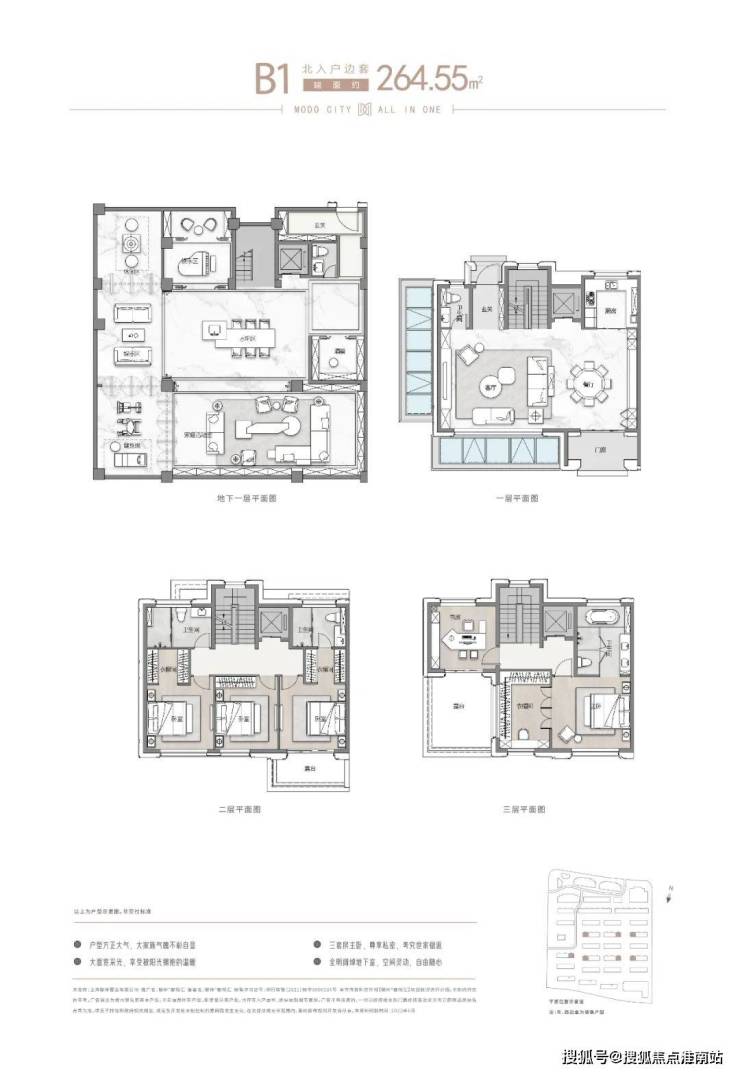 项目户型分为南北入户,均为地上三层,地下两层设计,满足业主们“有天有地有花园”的别墅居住体验!