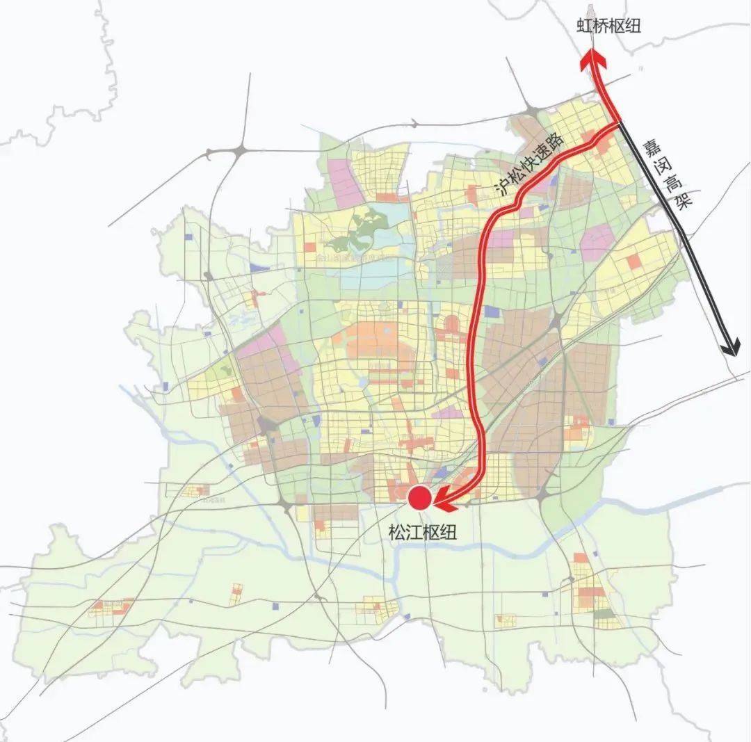 沪松快速路将在现有沪松公路之上全线叠加一条全长约23公里的主线高架,以实现快速化。上层城市快速路设计车速为60至80千米每小时,下层地面道路设计车速为50千米每小时。