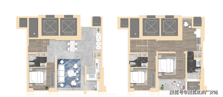 7. Duplex: In terms of concept, a duplex residence is considered as one floor, but it has a higher floor height than a regular house. Partially, a mezzanine can be excavated to accommodate bedrooms or study areas, and connected by stairs.