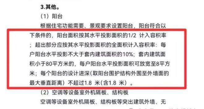 ① 新政放开,单户阳台投影面积不大于8平米的限制;