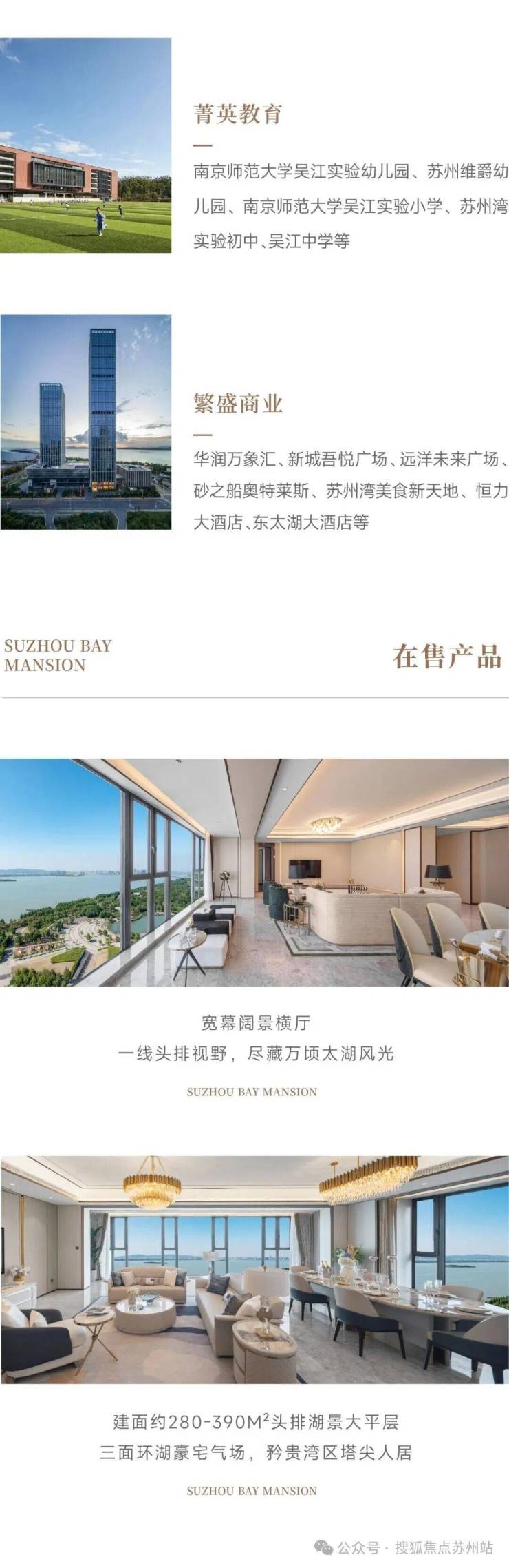 位于太湖新城核心,便利交通主干道通达城区连接区域内外,周边五大商圈环伺;南京师范大学吴江实验幼儿园及小学、苏州湾实验初中等全龄段优渥教育资源,坐享太湖岸线城市公建,从近1200亩东太湖生态园到约21.5万㎡苏州湾文化中心及8字型阅湖台联动大剧院的音乐喷泉。
