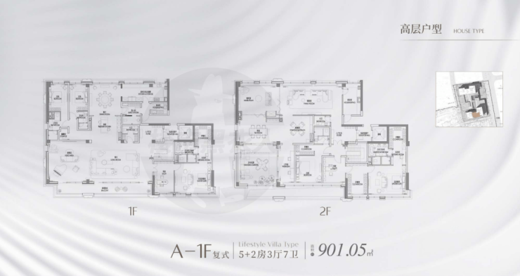 D1地块:约2.1万㎡小高层及联排与独栋,共98套,套均面积282㎡。