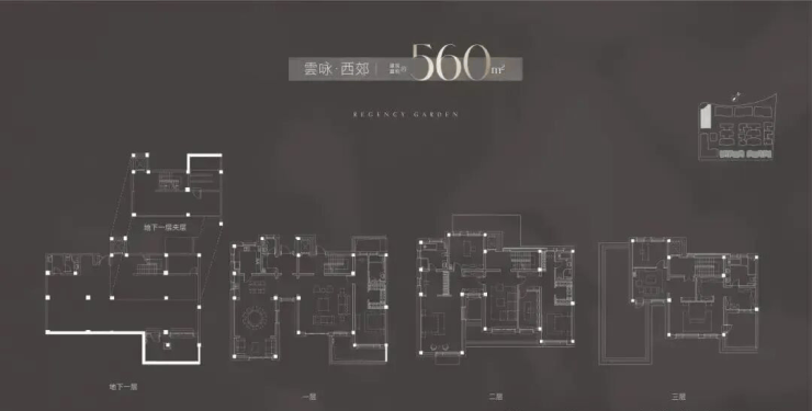 项目别墅是大头,且都是拼接型别墅:地上三层,地下一层,联排面积段为430㎡、530㎡、560㎡、700㎡,合计有23套。