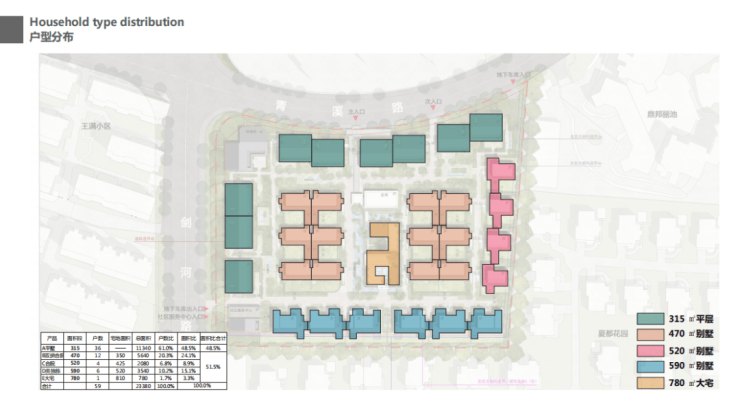 项目规划由5幢4层平层公寓、5幢3层联排别墅及1幢保障房组成。平层公寓面积段为134-350㎡、合计有45套;联排面积段为430㎡、530㎡、560㎡、700㎡,合计有23套。目前平层已售罄,剩余联排待售!