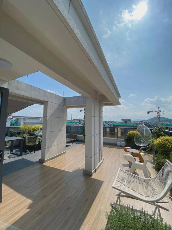 上叠二层除了三间卧室,还有南北两个露台,从哪个房间走出去,都是好空气和好风景。