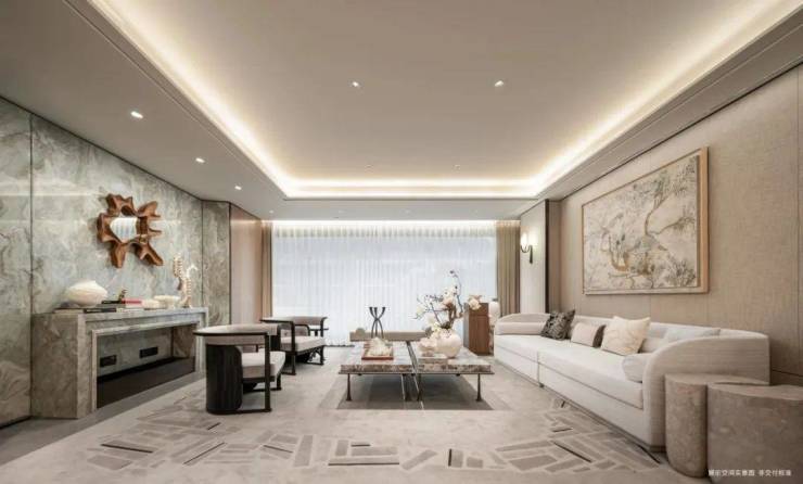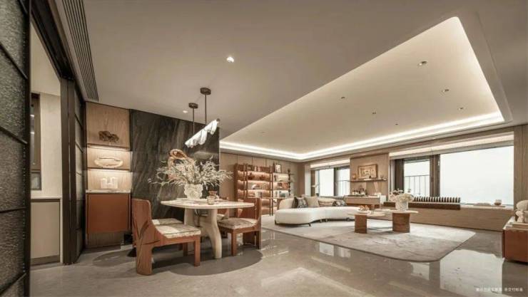 示范区大量运用数十种原石打造,例如社区入口处揉石成缎的葡萄牙沙漠风哑光面石墙,采用了十几道复杂工序,水刀雕刻、高精抛光仅是前奏,喷砂、浮雕与镶嵌等高难技艺亦是中段,最终展现完美的光泽与细腻触感,形状上还原风的褶皱,展现独家的质感和归家仪式感。