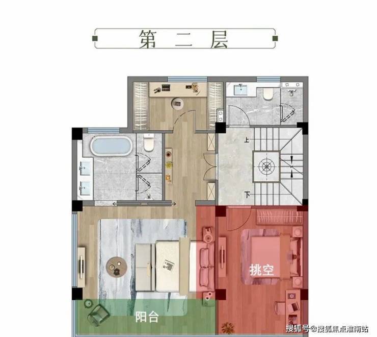 二层,可实现多样化布局。可改约6.4米挑高+南向阳台,根据家庭需要自由定制,可以是2房布局,也可以是家庭第二客厅,工作室、收藏间,灵活性较强。