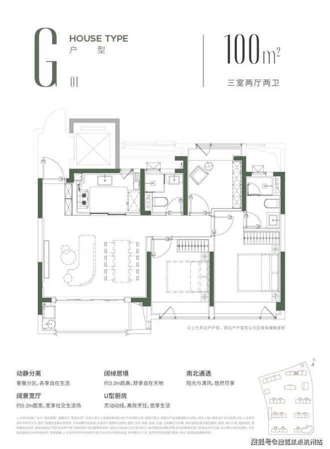 ✔横厅尺度越级:约5.2米横向面宽客厅(同级百平户型多为3.3-3.5米),外接阔景阳台,采光与视野双提升。
