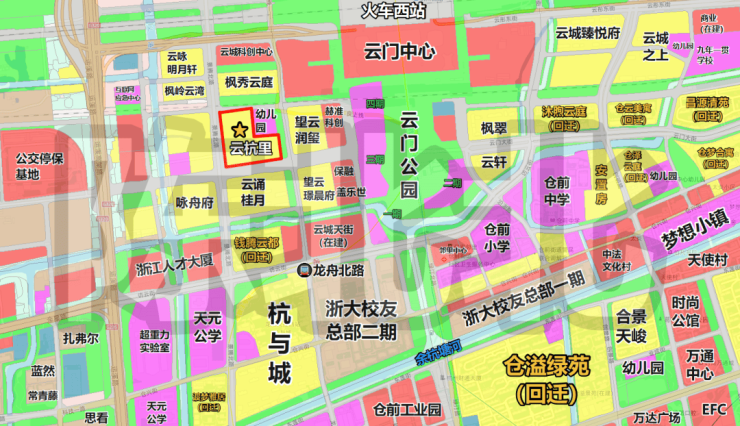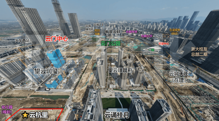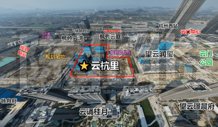 云杭里位于云城西面,因为更近云门公园和云门中心,整体地块价值略高于咏舟府,当下低于望云璟晨府、杭与城