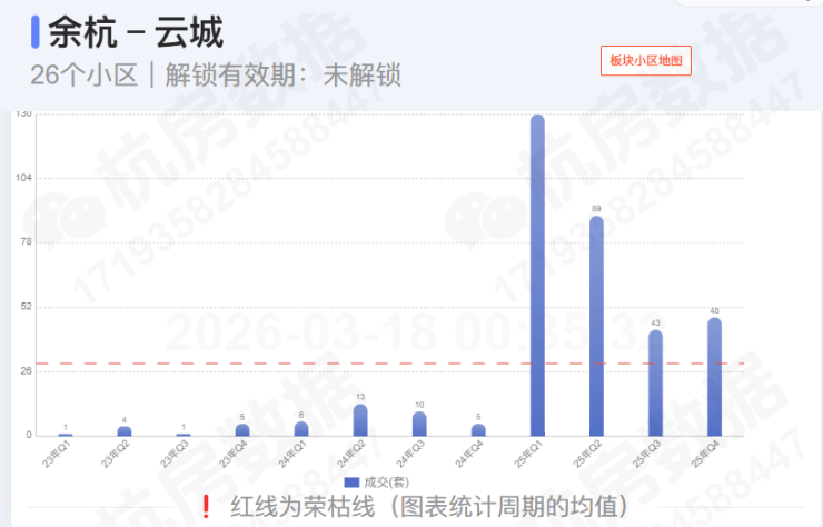 2. 板块去化周期方面,2025年云城板块20个小区(含回迁)合计成交243套二手房。日均成交0.67套,去化周期25.18个月。