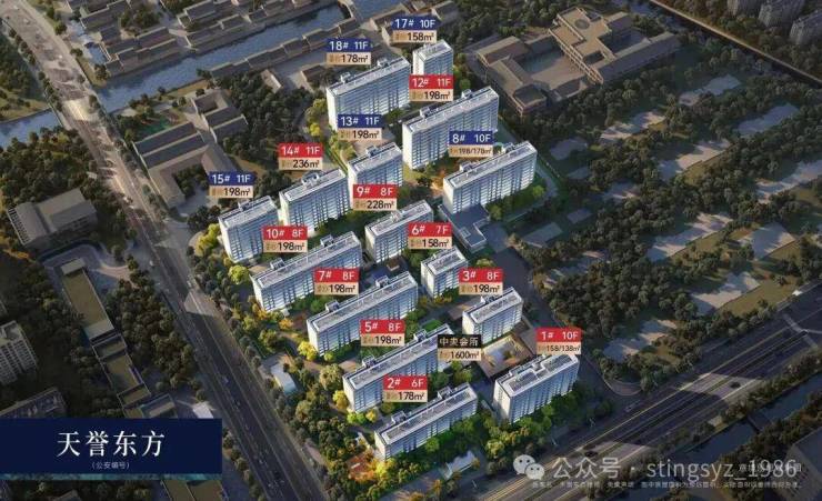 天誉东方是2026年交付的,小区由15幢6-11F洋房组成,总户数约400套,建面约138-158-178-198-228㎡五种户型。
